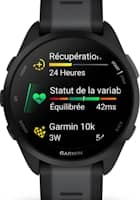 Nouveauté 2025, la Forerunner 570, remplaçante de la Forerunner 265, est une montre multisport et triathlon compacte et légère disponible en 2 tailles (42 et 47 mm) avec écran AMOLED tactile de 1,2" ou 1,3". Taillée pour la performance, elle offre des fonctions ultra-complètes pour la course à pied, le trail et bien plus, ainsi que des fonctions de navigation GPS (suivi d'itinéraire avec guidage assisté, retour au départ). C'est l'équivalent du modèle haut de gamme 970 mais sans cartographie, sans ECG, sans lampe LED et avec un peu moins de fonctions. Elle embarque un GPS double-fréquence précis, un cardiofréquencemètre optique avec oxymètre, un altimètre barométrique, un thermomètre, un lecteur MP3, un micro et un haut-parleur, la fonction Garmin Pay. Elle offre des outils poussés pour s'entraîner, préparer une compétition et suivre ses performances, entre autres : widget dédié à la course à pied pour s'entraîner plus efficacement, prédicteur de temps de course, statut et charge d'entraînement, VFC, VO2max, dynamiques de course à pied et de vélo, préparation à l'entraînement, puissance de course, coach vocal. Elle détecte les incidents, peut envoyer un message SOS et offre LiveTrack (suivi à distance). On trouve aussi un assistant vocal et des commandes vocales. Son autonomie est de 18 h (sport) et 10 jours (montre).