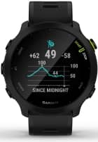 Destinée aux sportifs de tous les niveaux, y compris les débutants, la Forerunner 55 est une montre connectée GPS d'entrée de gamme plutôt bien fournie et conçue pour être simple à utiliser, pratique et sans superflu. Elle embarque un GPS, un cardio au poignet, un écran couleur de 1,04" et offre une autonomie de 20h ! Elle est compacte (42 mm de diamètre), ultralégère (37 g) et propose tout ce qu'il faut pour courir, nager ou rester en forme, incluant des fonctions pour l'entraînement et le suivi de la santé. Remplaçante de la Forerunner 45, elle offre une pléthore de nouvelles fonctionnalités : suggestions quotidiennes d'entraînement, PacePro, prédiction de course, temps de récupération, course sur piste, 10 fonctions pour la natation. Elle mesure la VO2max, enregistre le parcours, permet de programmer des entraînements et dispose d'une fonction de détection d'incident et d'appel SOS. Elle reçoit les notifications de Smartphone et permet le suivi sur Internet (fonction Livetrack)