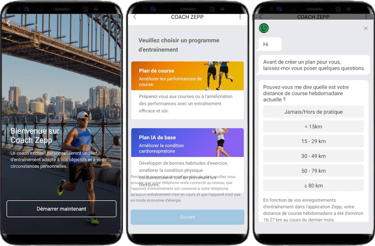 L'application Zepp, disponible uniquement sur téléphone, offre une interface simple à utiliser et propose de bonnes analyses. L'un de ses points faibles est toutefois l'absence d'outil de création d'itinéraire qui demande de passer par une application tierce (Komoot ou Strava par exemple) pour créer, récupérer et télécharger depuis Zepp un fichier GPX.