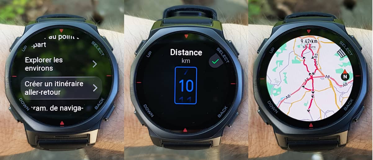 Sur le papier, elle se rapproche clairement des modèles outdoor haut de gamme de Garmin, tels que les Fenix 8 et Fenix 8 Pro. Beaucoup des atouts Garmin y sont réunis ou presque : fonctions et métriques sportives étayées, cartographie routable, navigation GPS avec recalcul d'itinéraire, lampe torche à LED, matériaux similaires, micro et haut-parleur, commandes vocales, deux tailles de boîtier... Elle se distingue même par un écran plus grand et plus lumineux, un poids plus faible et surtout un prix bien plus accessible, presque 3 fois inférieur !