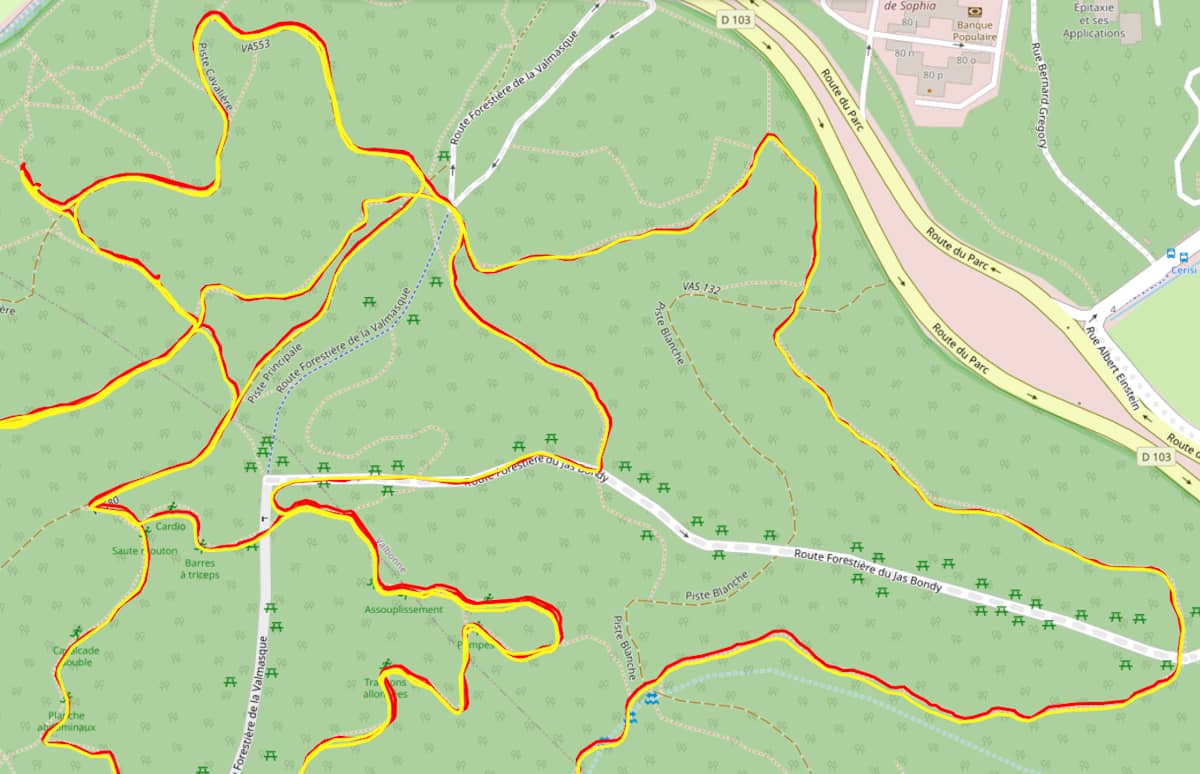 GPS : Le positionnement GPS de l'Amazfit T-Rex 3 Pro m'a semblé très fiable avec une trace précise et concentrée sur tous mes parcours incluant mon parcours de référence. En revanche, j'ai trouvé la distance totale sous-estimée, même en milieu dégagé, avec des écarts pouvant atteindre 3% en forêt. Je ne sais pas si cela est lié au fait que la trace est lissée ou à l'algorithme. C'est dommage car le GPS semble très précis.