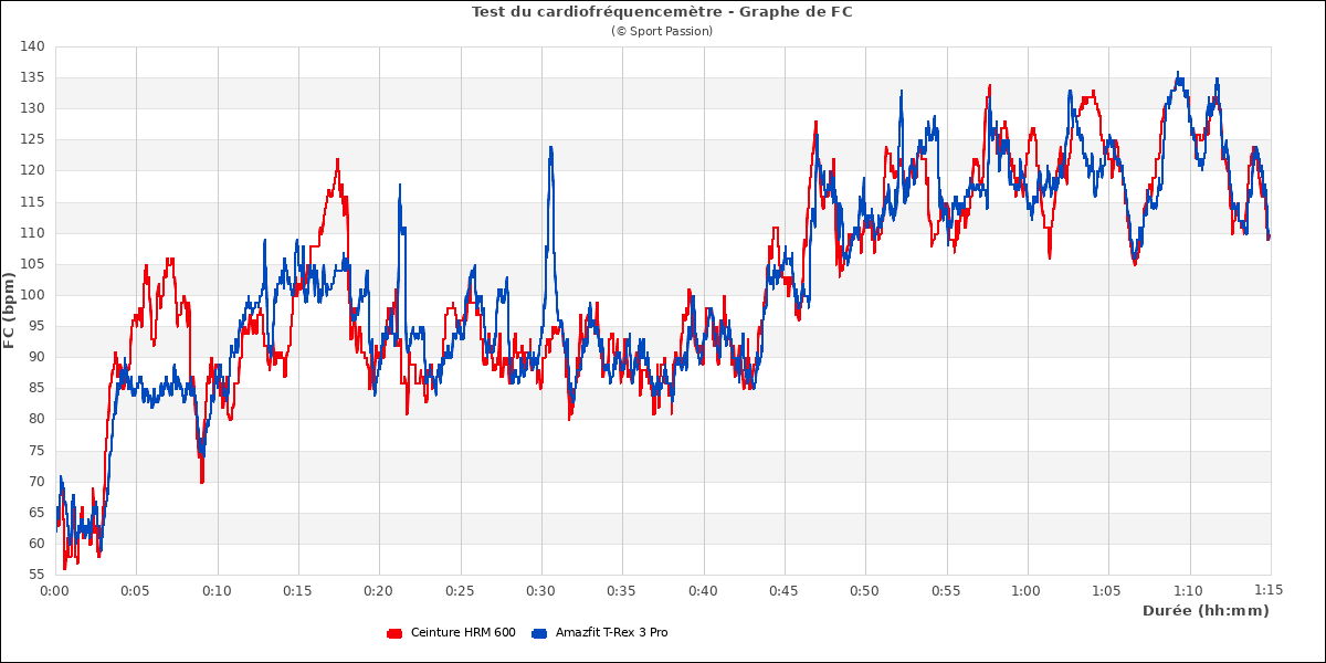 Ce test permet surtout de comparer les résultats à ceux obtenus dans les mêmes conditions avec d'autres montres. Si vous recherchez la meilleure précision, je vous recommande d'utiliser une ceinture thoracique ou un brassard cardio. Un conseil : quelle que soit la montre et la marque, serrez toujours bien le bracelet pour des mesures optimales pendant le sport (1 ou 2 crans de plus qu'au quotidien).