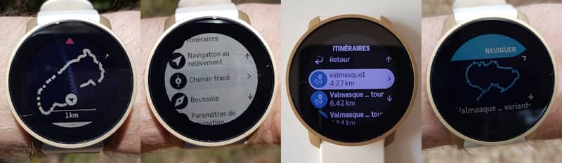 Toute bonne montre GPS se doit également de mesurer précisément la distance tout au long du parcours pour être à même d'afficher une vitesse ou une allure fiable et bien sûr une distance totale correcte. C'est ce que nous avons constaté régulièrement pour la 9 Peak Pro, que ce soit en ville ou en forêt. Même si nous n'avons pas les moyens de vérifier précisément les distances réelles, la comparaison avec la Forerunner 255 ou la Fenix 7 Sapphire est parlante. Les écarts dépassent rarement les 1% en forêt, et moins de 0,5% en milieu dégagé, soit l'équivalent de 200 m sur un marathon, sachant que ces chiffres sont mesurés à faible vitesse (marche), donc avec une précision généralement moins bonne qu'en courant ou en roulant.