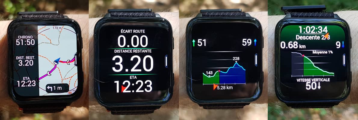 J'ai testé la Venu X1 sur mon parcours de référence (crash test) ainsi qu'en ville et en forêt, toujours en utilisant le mode GPS le plus précis (mode GPS Tous les Systèmes sur ce modèle). Comme toujours, je portais parfois 1 à 3 autres montres en parallèle pour comparer les traces, espacées l'une de l'autre ou sur un poignet différent pour éviter qu'un modèle ne gêne la réception GPS de l'autre.