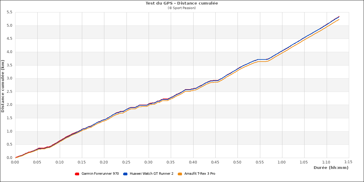 Vu de loin, la trace semble cohérente avec celle des autres montres testées.
