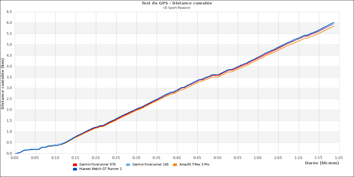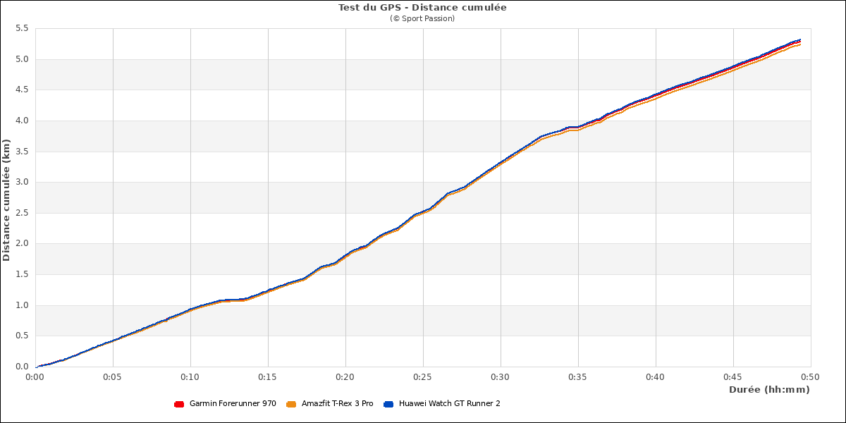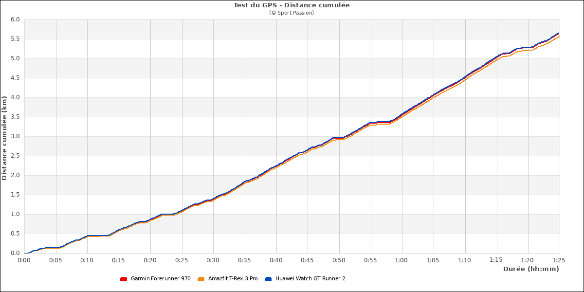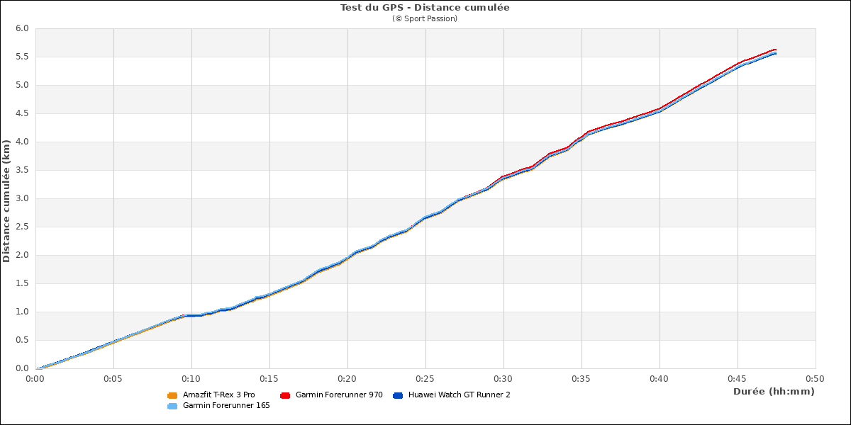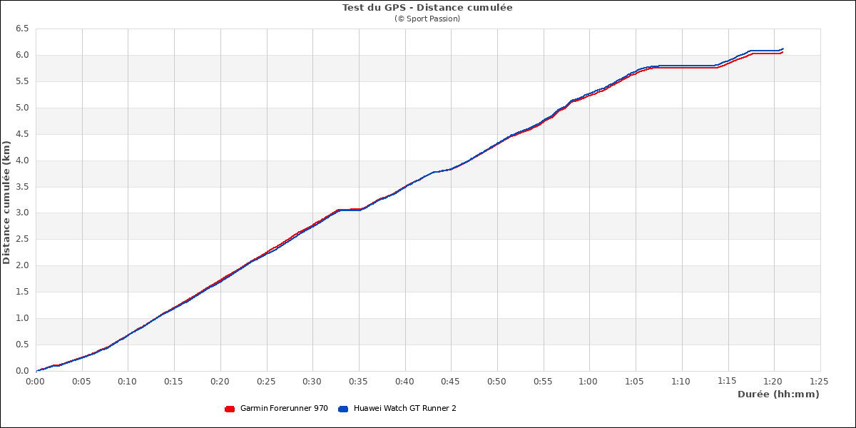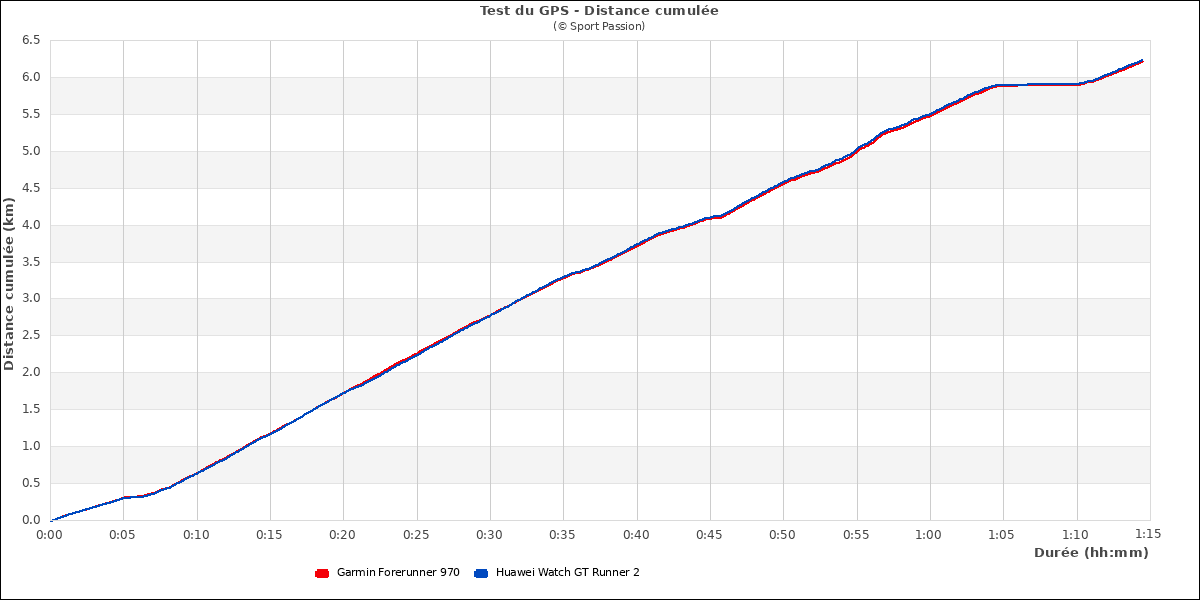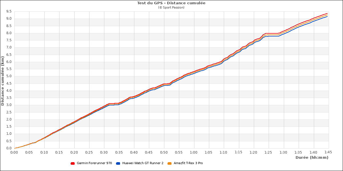 La distance cumulée est malgré tout très en ligne avec la Forerunner 970.