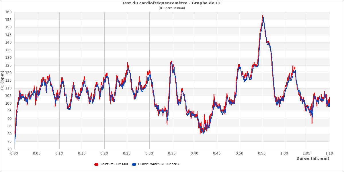 Ce test permet surtout de comparer les résultats à ceux obtenus dans les mêmes conditions avec d'autres montres. Si vous recherchez la meilleure précision, je vous recommande d'utiliser une ceinture thoracique ou un brassard cardio. Un conseil : quelle que soit la montre et la marque, serrez toujours bien le bracelet pour des mesures optimales pendant le sport (1 ou 2 crans de plus qu'au quotidien).