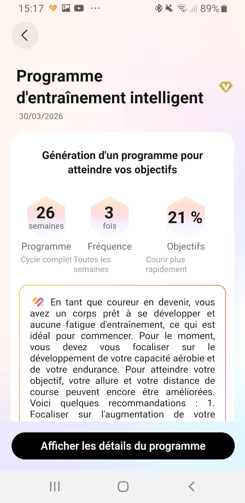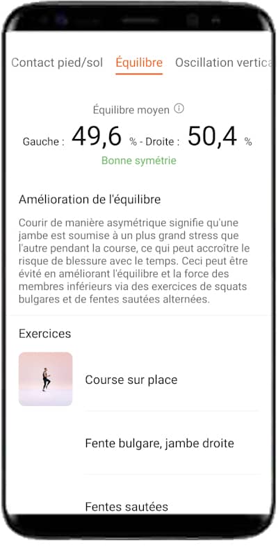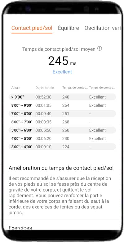 On trouve de bonnes analyses autour de la santé mais quasiment aucune concernant le sport. En revanche, Huawei propose une bonne analyse des dynamiques de course et des exercices pour améliorer sa technique ainsi que des commentaires et suggestions quand on suit un entraînement personnalisé.