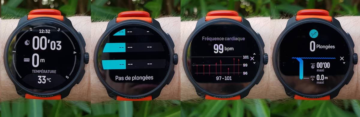 - Mode snorkeling et profondimètre pour la plongée en apnée