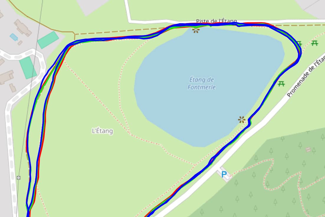 J'ai réalisé le même parcours aller-retour plusieurs jours de suite en milieu mixte (sous les arbres par endroits, réception GPS globalement bonne).