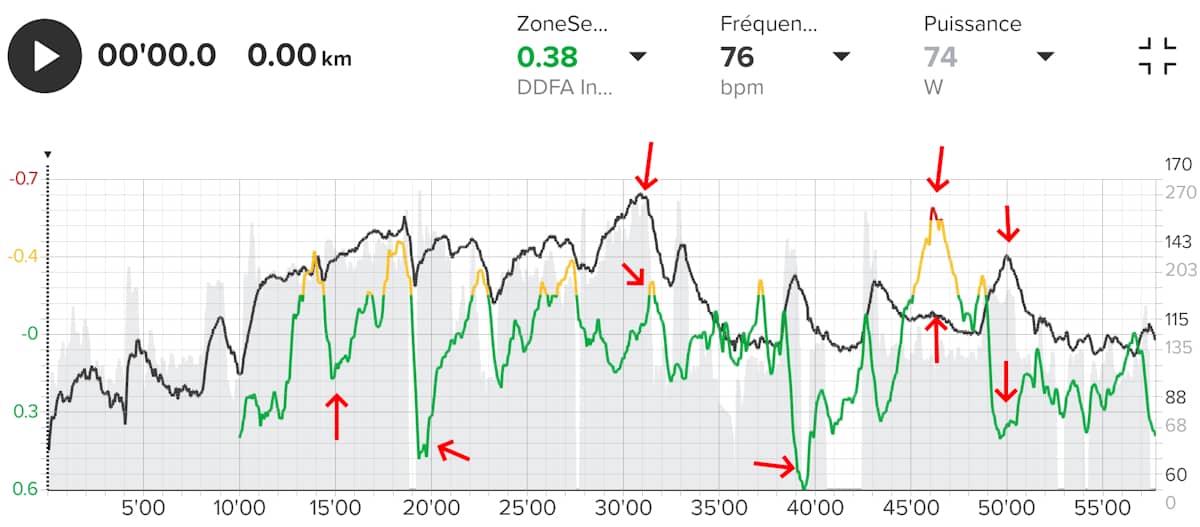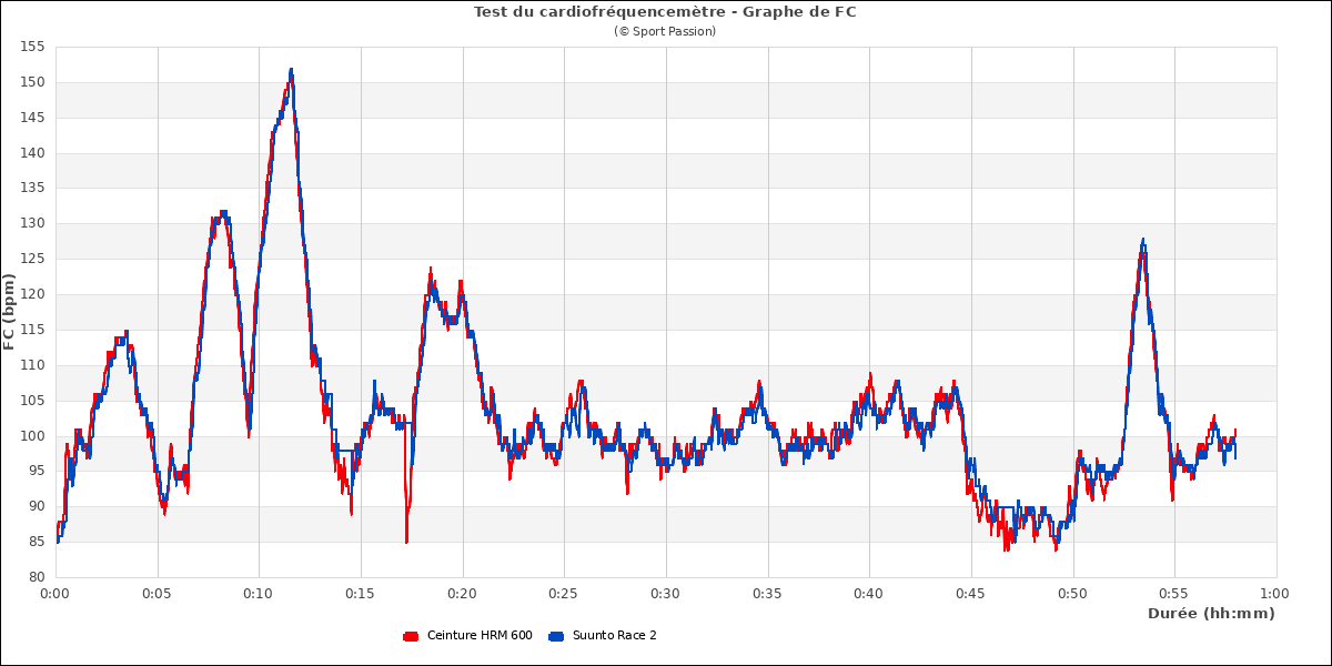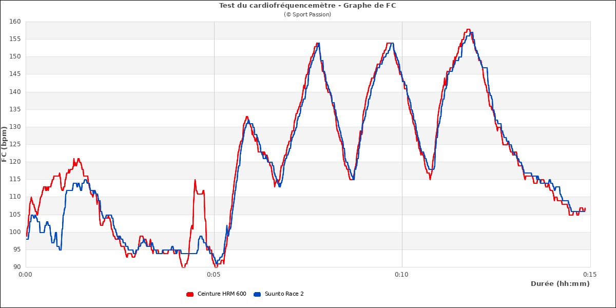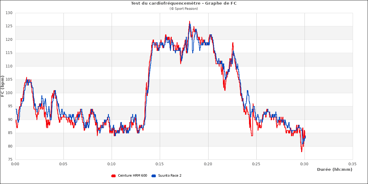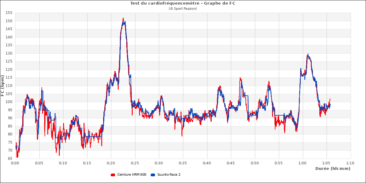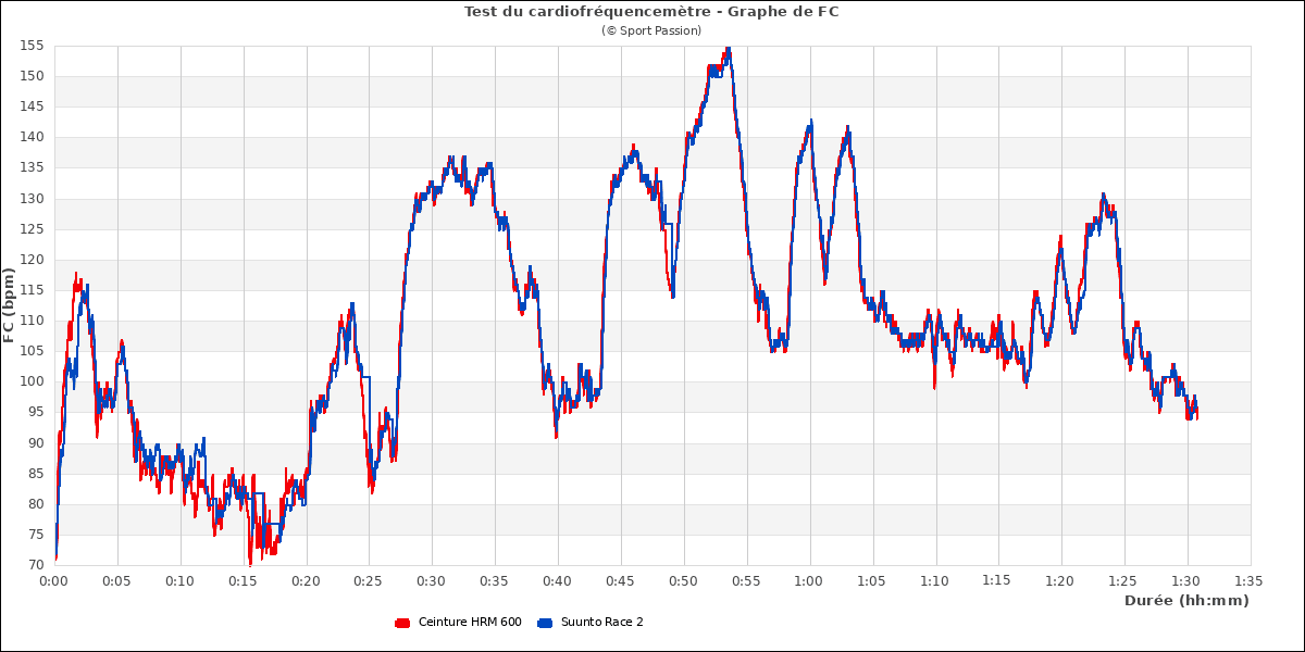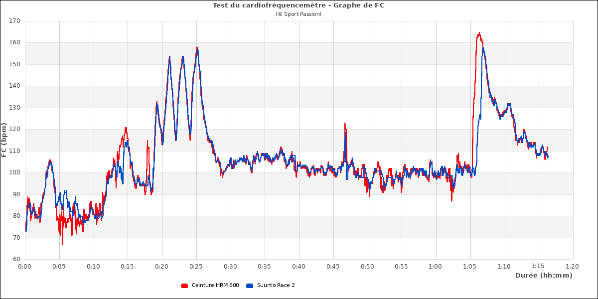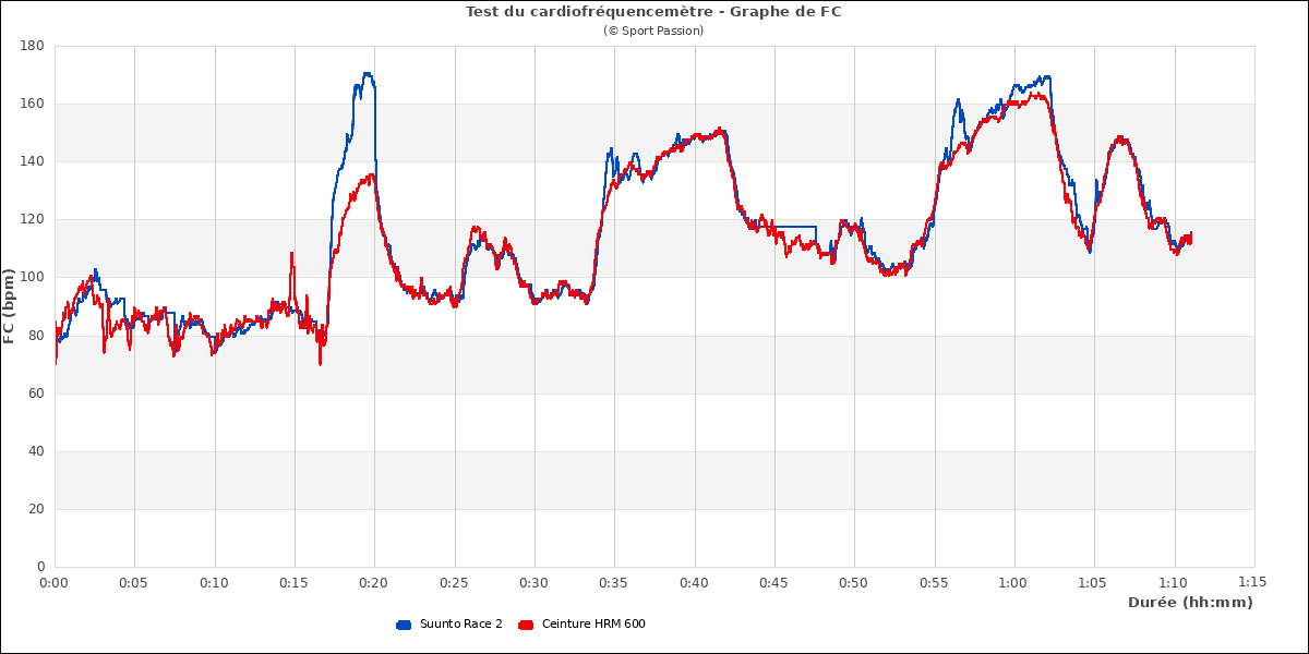 On voit ici quelques écarts dans les pics lors du fractionné : la Race 2 accuse un petit retard de mesure et, sur la dernière accélération, monte un peu trop haut. Mais cela est assez minime.