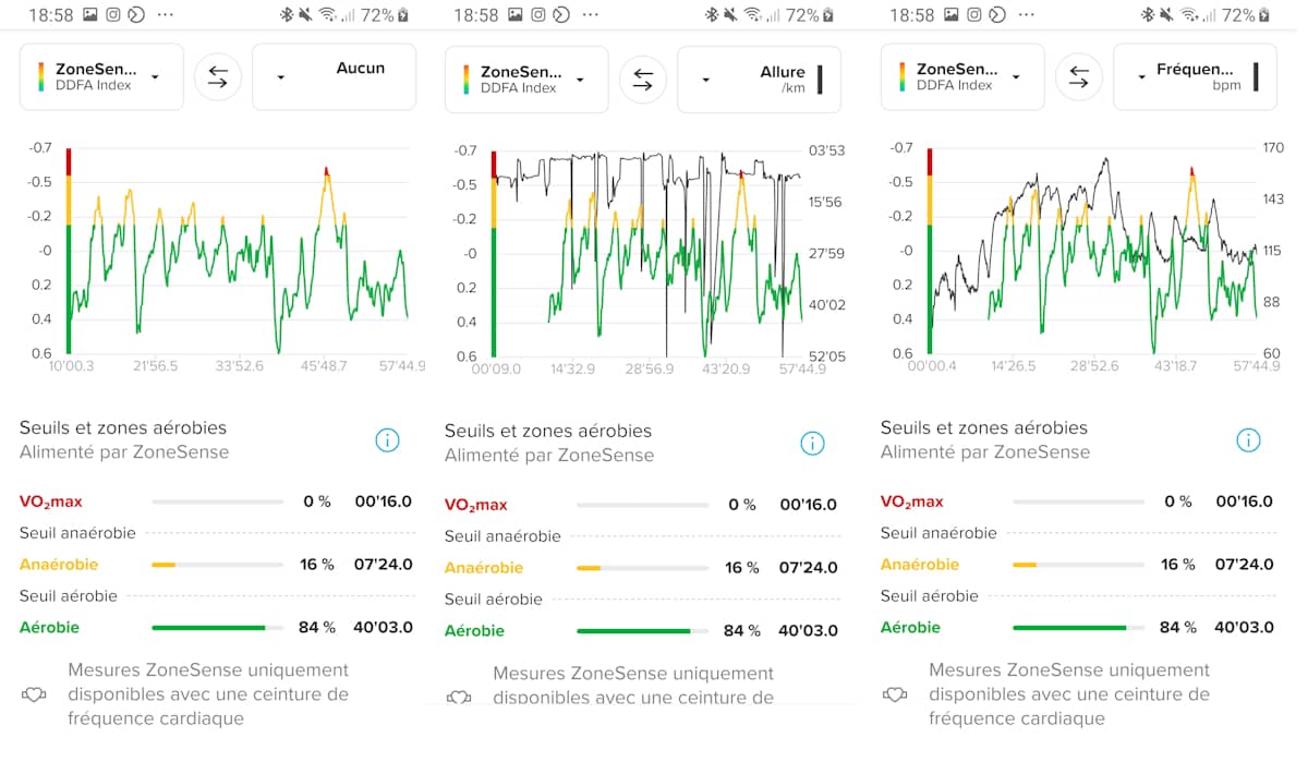 Sur cette autre sortie, c'est moins bon pendant les temps de marche et excellent pendant la course.