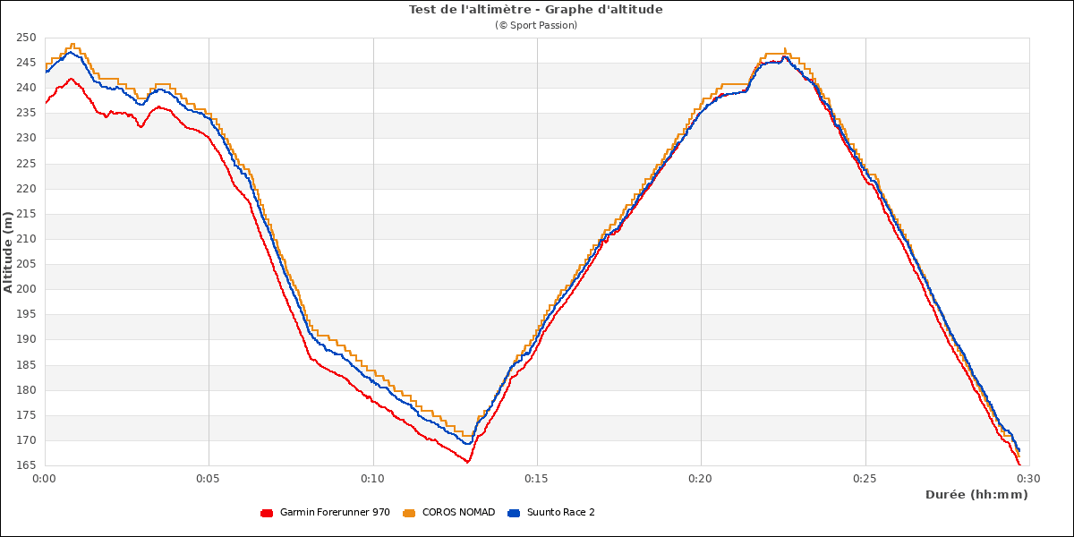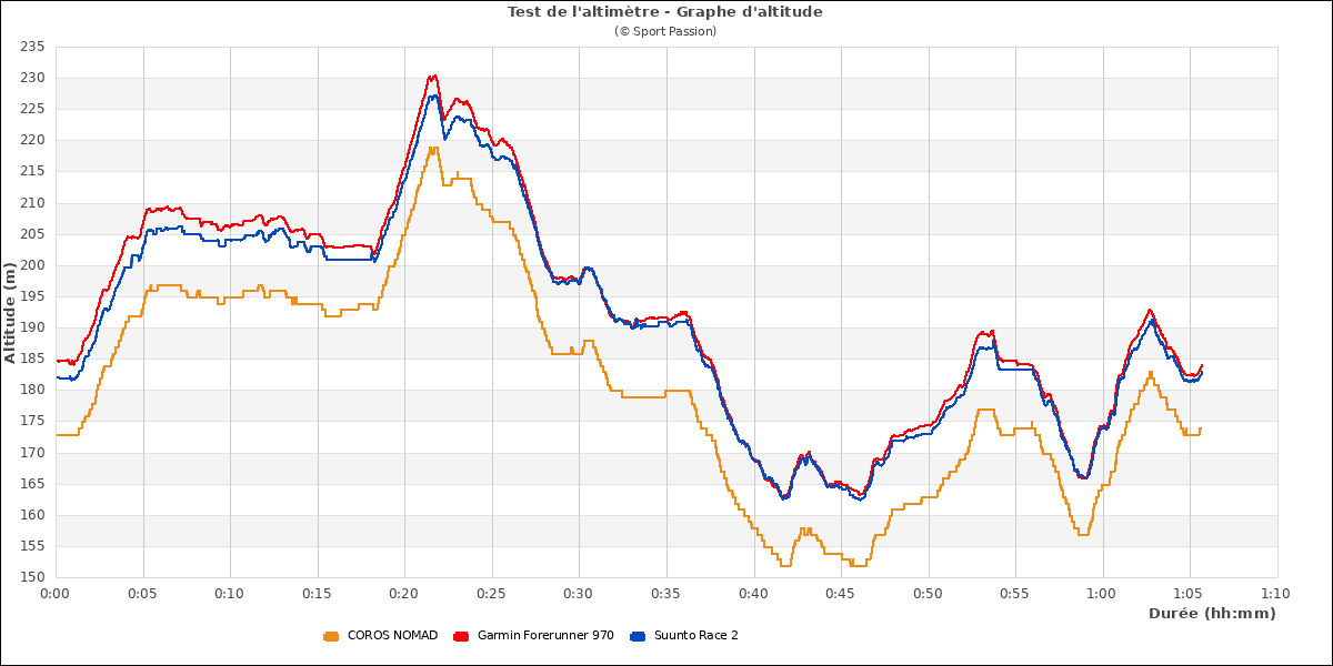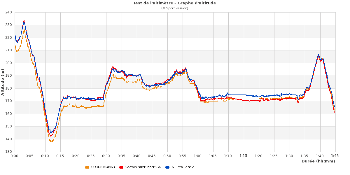 La Suunto Race 2 est équipée d'un altimètre barométrique à étalonnage manuel et automatique. On peut l'étalonner avant de lancer l'activité mais plus après.