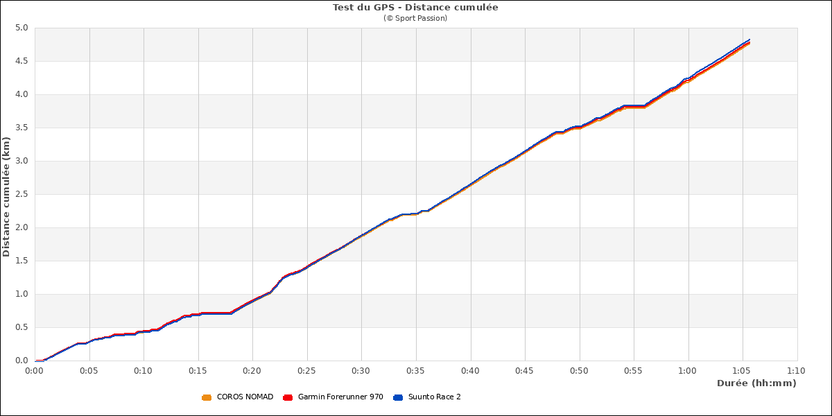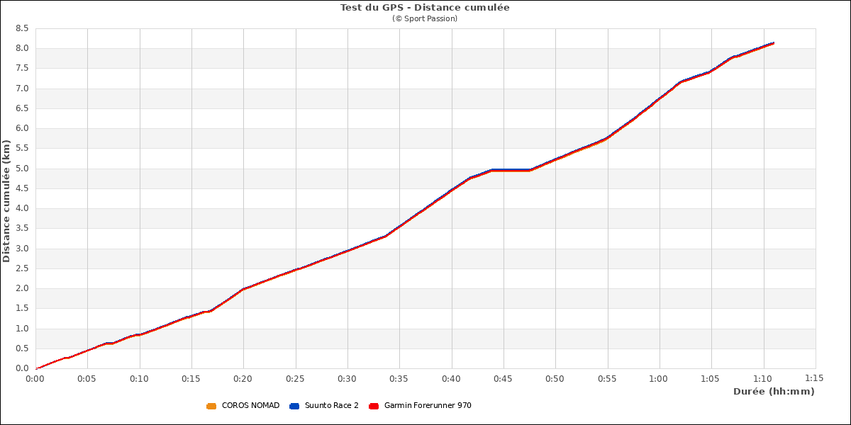La distance cumulée est très bonne aussi et l'écart à l'arrivée est de 0,8%.